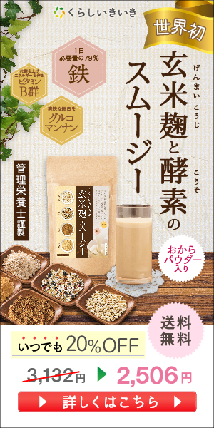 管理栄養士が作った玄米麹スムージーなら、1杯で1日分の鉄分80%と91種の酵素が摂取できます